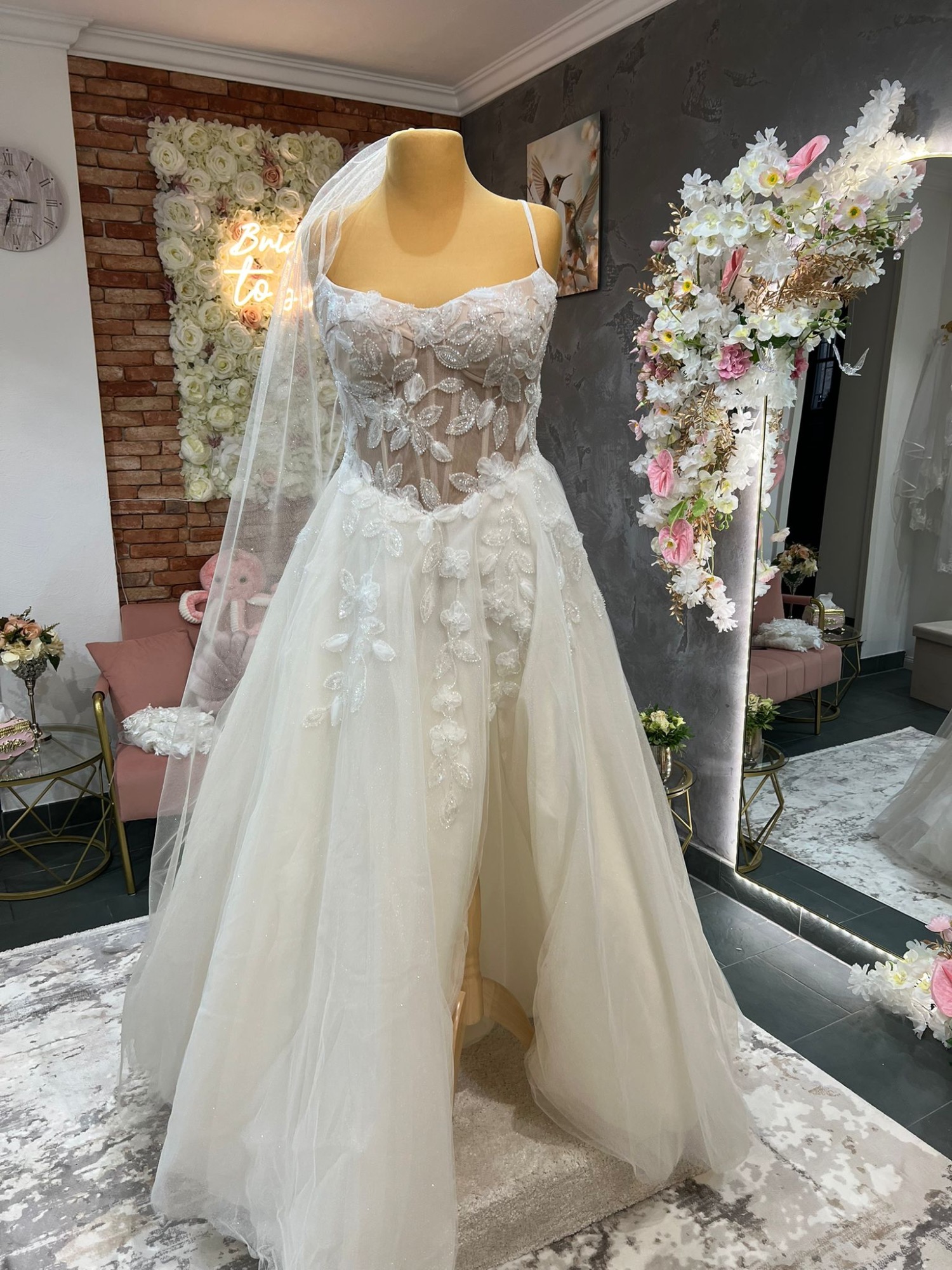 Bei uns findet jede Braut ihr Traumkleid unabhängig von Figur, Stil oder Hochzeitskonzept. Unsere Kollektion ist von Größe 34 bis 60 erhältlich, damit wirklich jede Kundin das perfekte Kleid wählen kann.